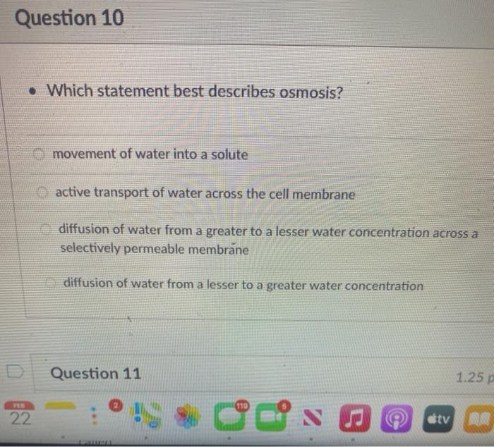 Solved Question 10 Which Statement Best Describes Osmosis Chegg Com